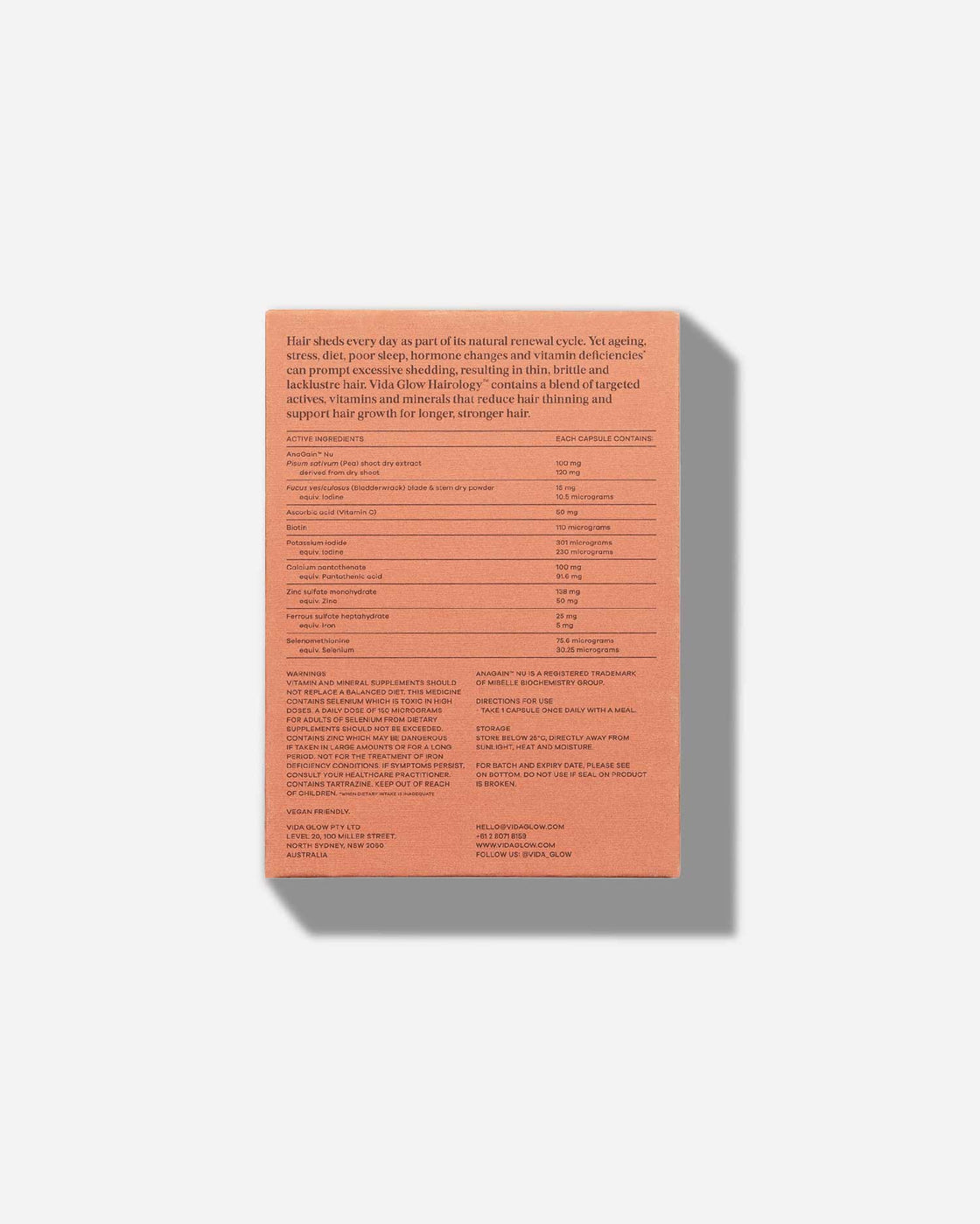 Powered by hero active, AnaGain™, and a robust blend of targeted micronutrients that are best for hair growth and thickness, Hairology supports and maintains healthy hair follicles to revitalise and strengthen strands from within. In clinical trials, AnaGain™ visibly reduced hair loss by 34% after 28 days of supplementation.(1)