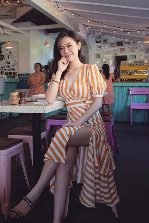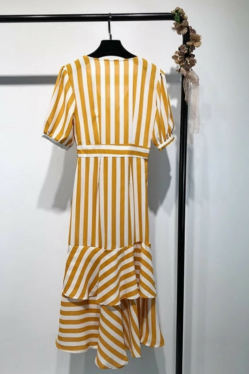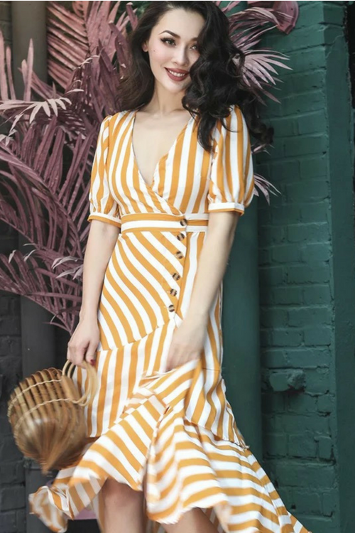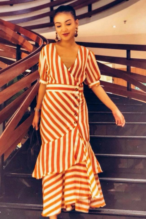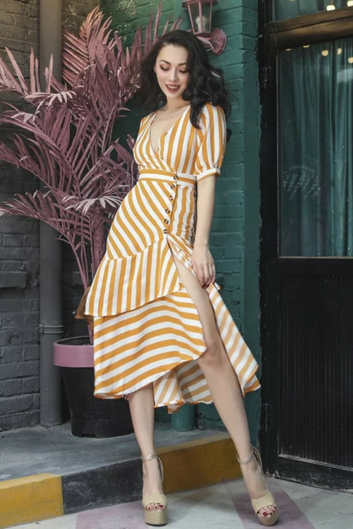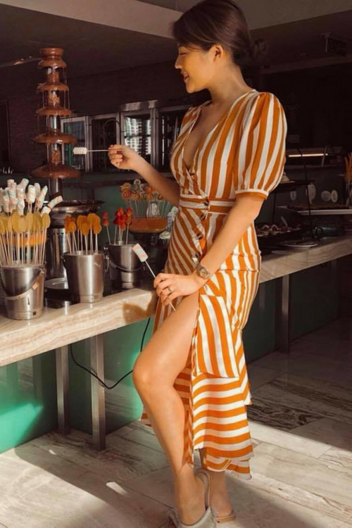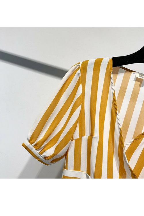 条纹印花 V 领