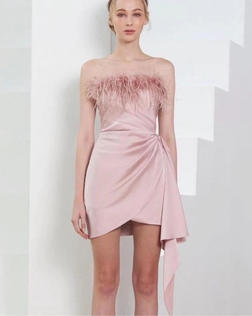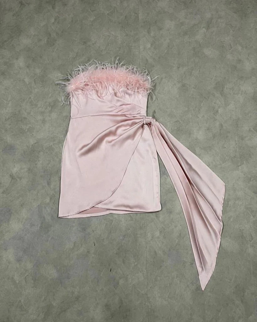 Phaedra BT 直筒皮草连衣裙 粉色