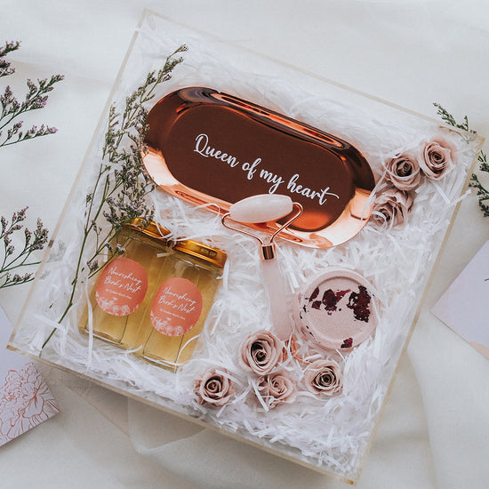 1x Rose Gold Metal Accessories Holder with “Queen of My Heart” Personalisation