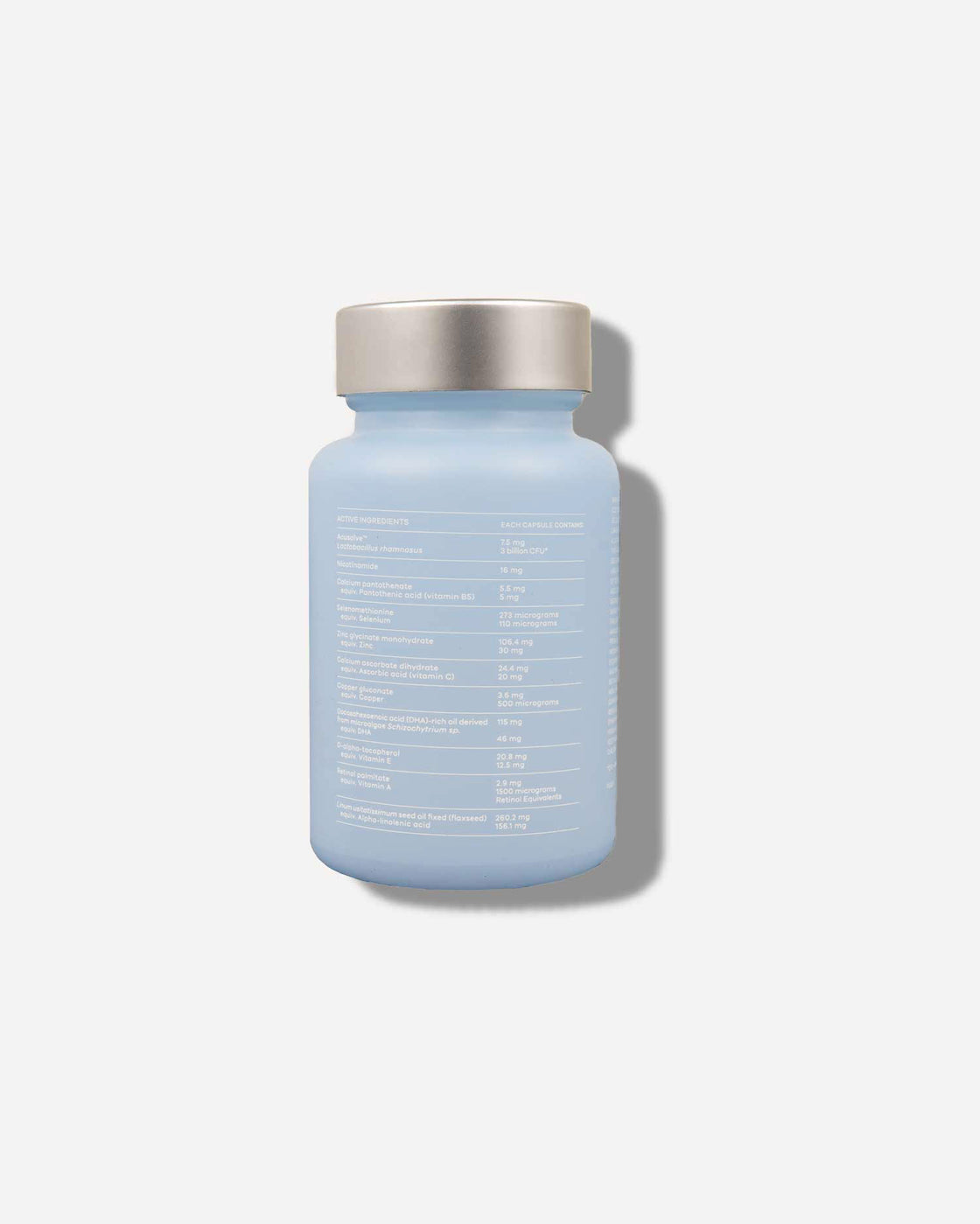 Clear 采用益生菌活性物质 AcuSolve™ 和有效剂量的富含 omega-3 的油、维生素和矿物质,采用独特的二合一胶囊技术,使身体能够吸收这种协同作用的皮肤清洁成分,否则这些成分可能无法吸收以标准胶囊形式食用。该配方在表面以下发挥作用,控制皮脂产生,中和皮肤和肠道中引起痤疮的细菌,并减少发红。